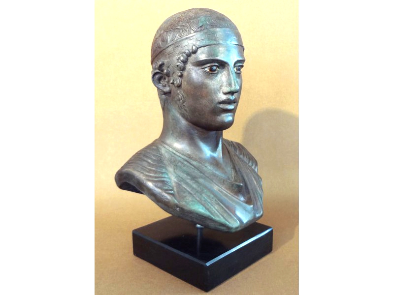Life size bronze bust of the Charioteer, originally belonging to a larger group which represented a chariot drawn by four horses. It was dedicated to Apollo by Polyzalos, the tyrant of Gela, in 478 B.C. when he won the chariot-race at the Pythian Games.