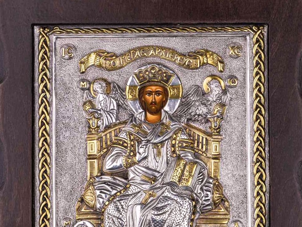 An exquisite silver Greek Orthodox icon of Jesus Christ the Great High Priest.