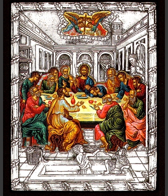 An exquisite silver Greek Orthodox icon of the Last Supper.