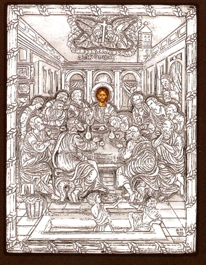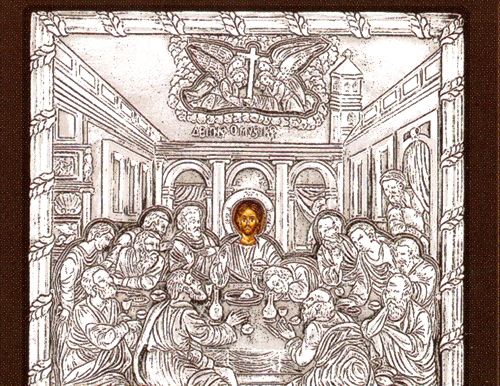 An exquisite silver Greek Orthodox icon of the Last Supper.