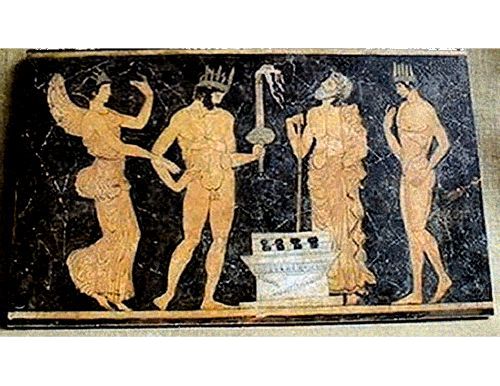 Beautiful fresco painting showing the procession of the lighting of the Olympic flame by the priests (Hellanodikae).(more information on the art of fresco wall painting…)