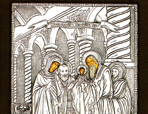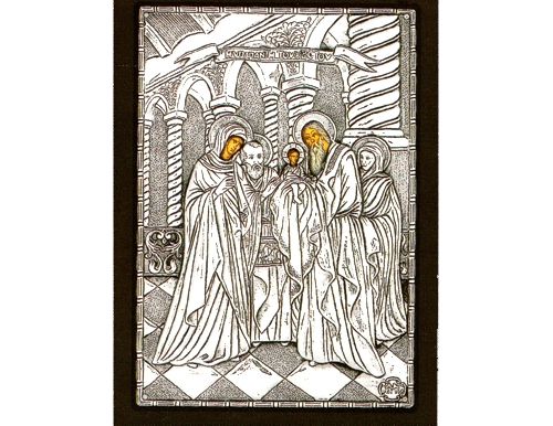 An exquisite silver Greek Orthodox icon of the Presentation of Jesus Christ to the Temple.