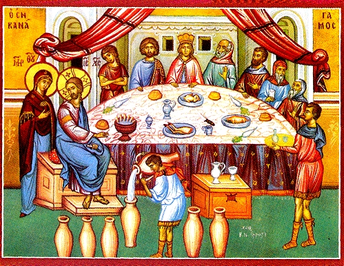 A beautiful Greek Orthodox icon of the Wedding at Cana miracle, handmade & hand painted by an expert Greek hagiographer.