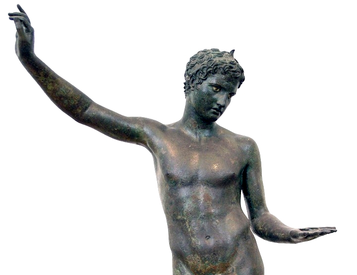 The youth seems lost in thought and oblivious to the outside world. The union of the very beautiful head and the harmonious lines of the body show the inspiration and skill of a real artist. The movement of it is balanced, and tension has been added to it by the way in which the right arm stretches out.