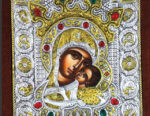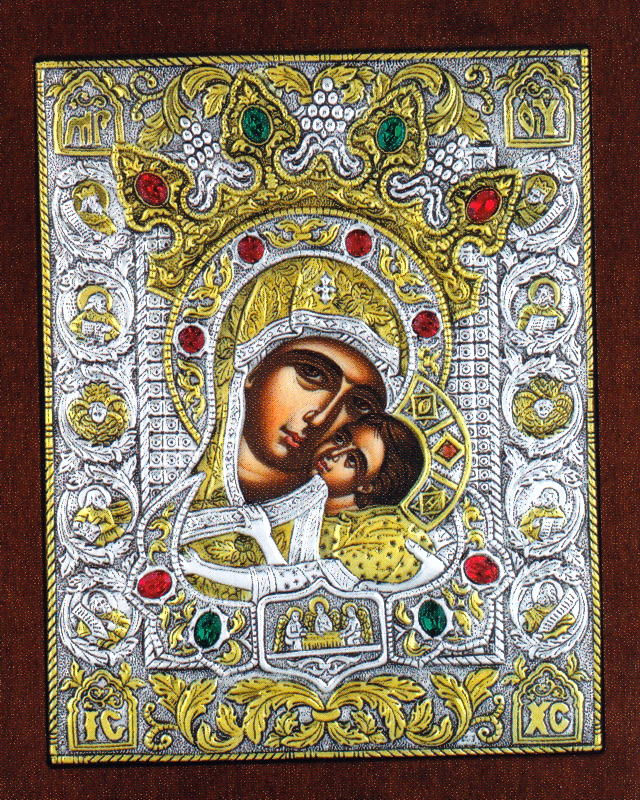 An exquisite silver Greek Orthodox icon of Theotokos Glykophilousa