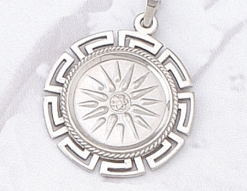 The pendant bears the Sun of Vergina, the emblem of the mighty Macedonian Empire which flourished in the 4th century BC.