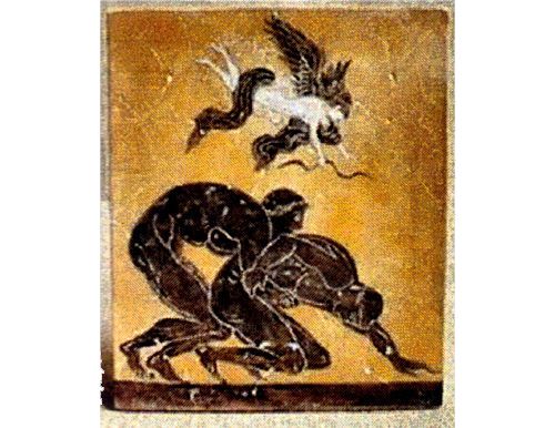 Beautiful fresco painting showing wrestlers competing at the ancient Olympic Games.(more information on the art of fresco wall painting…)